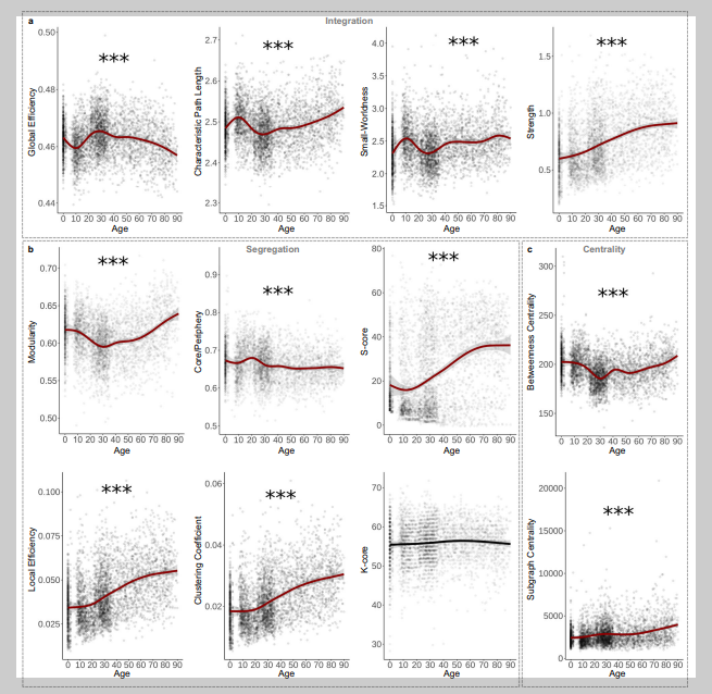 최근 신경과학에서는 뇌를 개별 영역의 집합이 아닌 복잡한 네트워크(topological system)로 이해하려는 흐름이 강해지고 있으며, 이 연구는 바로 그 관점에서 인간 전 생애를 다시 분석한다.