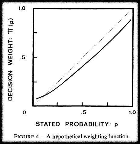 즉, 사람들은 낮은 확률의 사건을 과대평가하고, 높은 확률의 사건을 과소평가하는 경향이 있습니다.