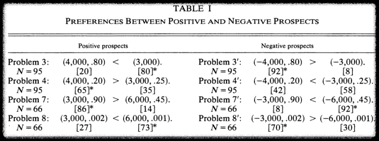 - 실험 참가자들은 손실을 피하려는 경향이 이득을 추구하는 경향보다 더 강하게 나타났습니다.