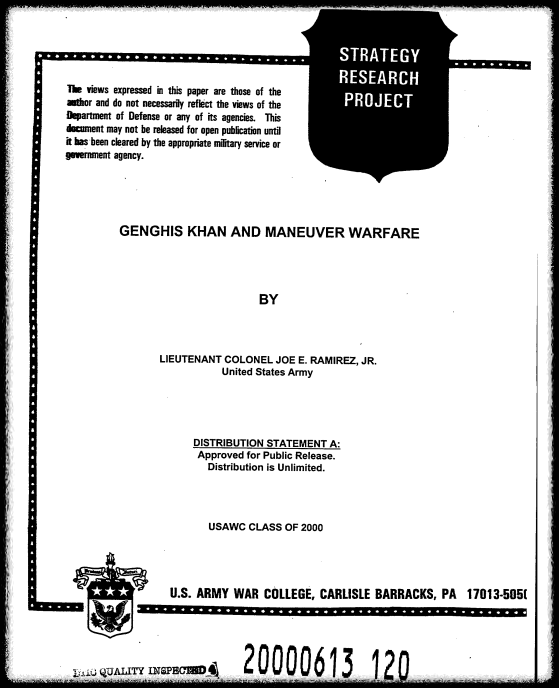 Ramirez, J. E. (2000). Genghis Khan and Maneuver Warfare. US Army War College.