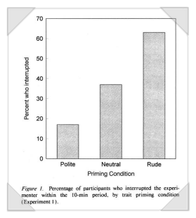 결과: 무례한 단어에 노출된 참가자들이 더 자주 말을 끊는 행동을 보임.