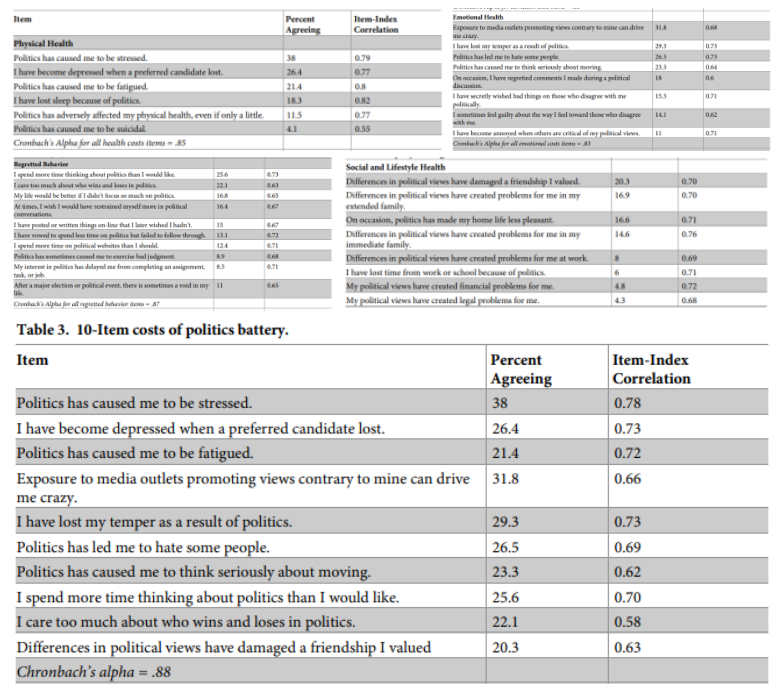 연구는 정치가 실제로 개인의 삶에 정량적으로 부정적인 영향을 끼친다는 증거를 다음과 같이 도출했습니다.